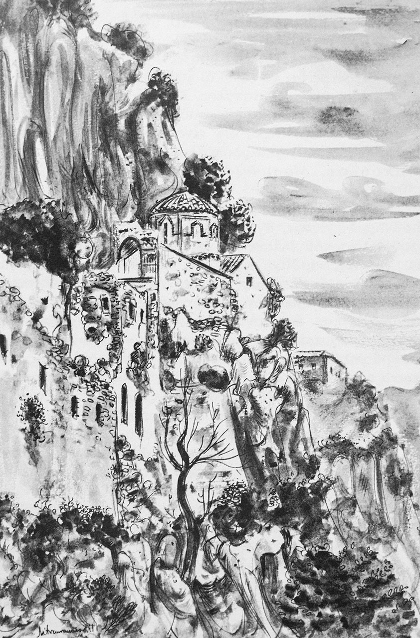 Ανάμεσά τους και ο Φώτης Κόντογλου με εκείνη την ιδιαίτερη ματιά που ήξερε να δίνει ιερότητα σε κάθε σκιά κάθε σχήμα έκανε τη Δημητσάνα να μοιάζει σαν εικόνα που ανασαίνει.