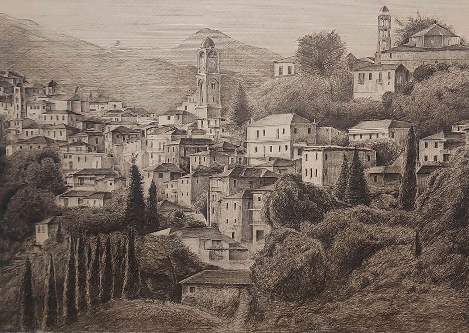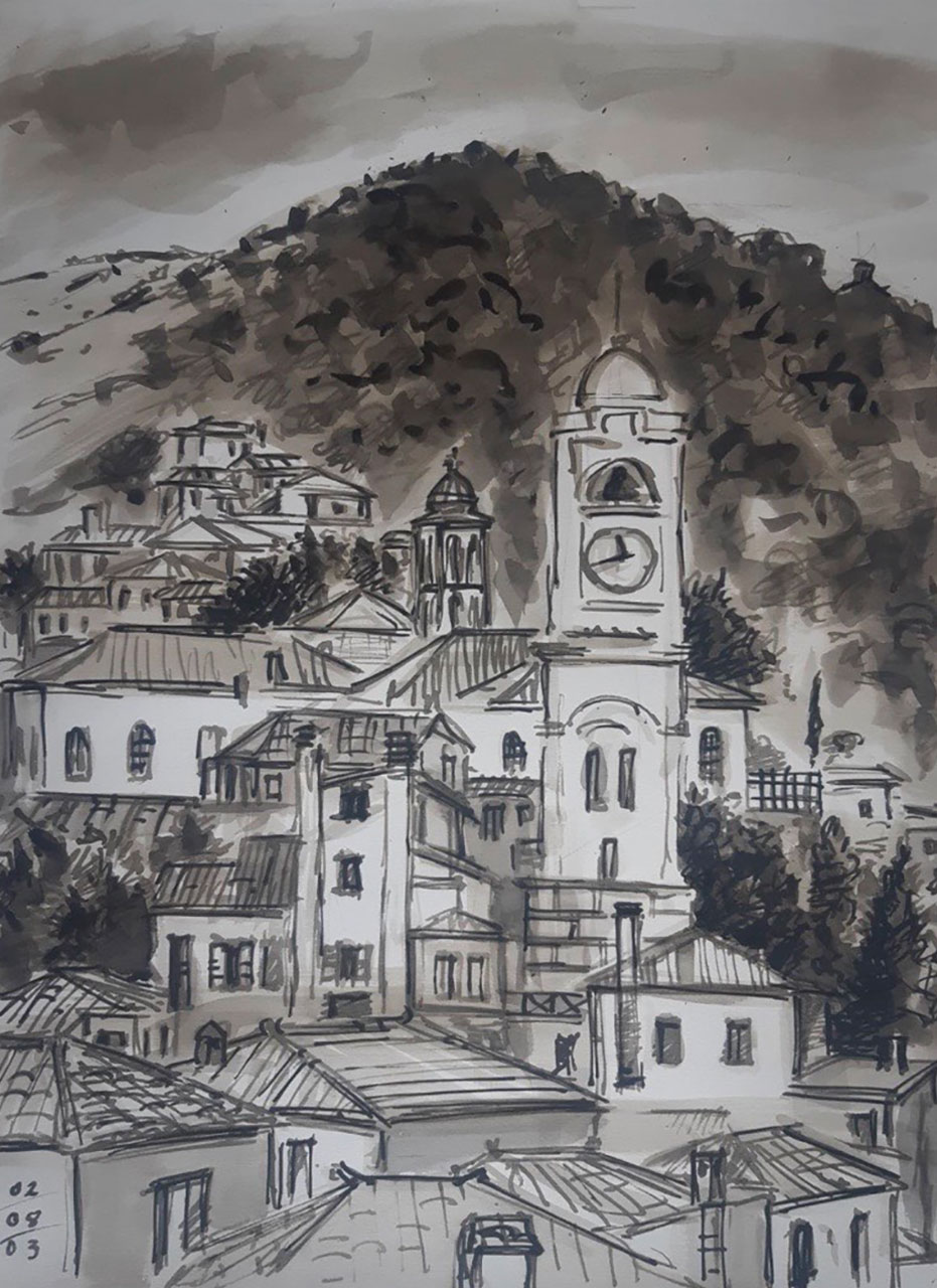 Οι ζωγράφοι πλησίασαν τα πέτρινα σπίτια της και τα μοναστήρια που στέκουν πάνω από τα φαράγγια σαν να έμπαιναν σε άλλη εποχή και προσπάθησαν να κρατήσουν στο καμβά την ατμόσφαιρα του τόπου.