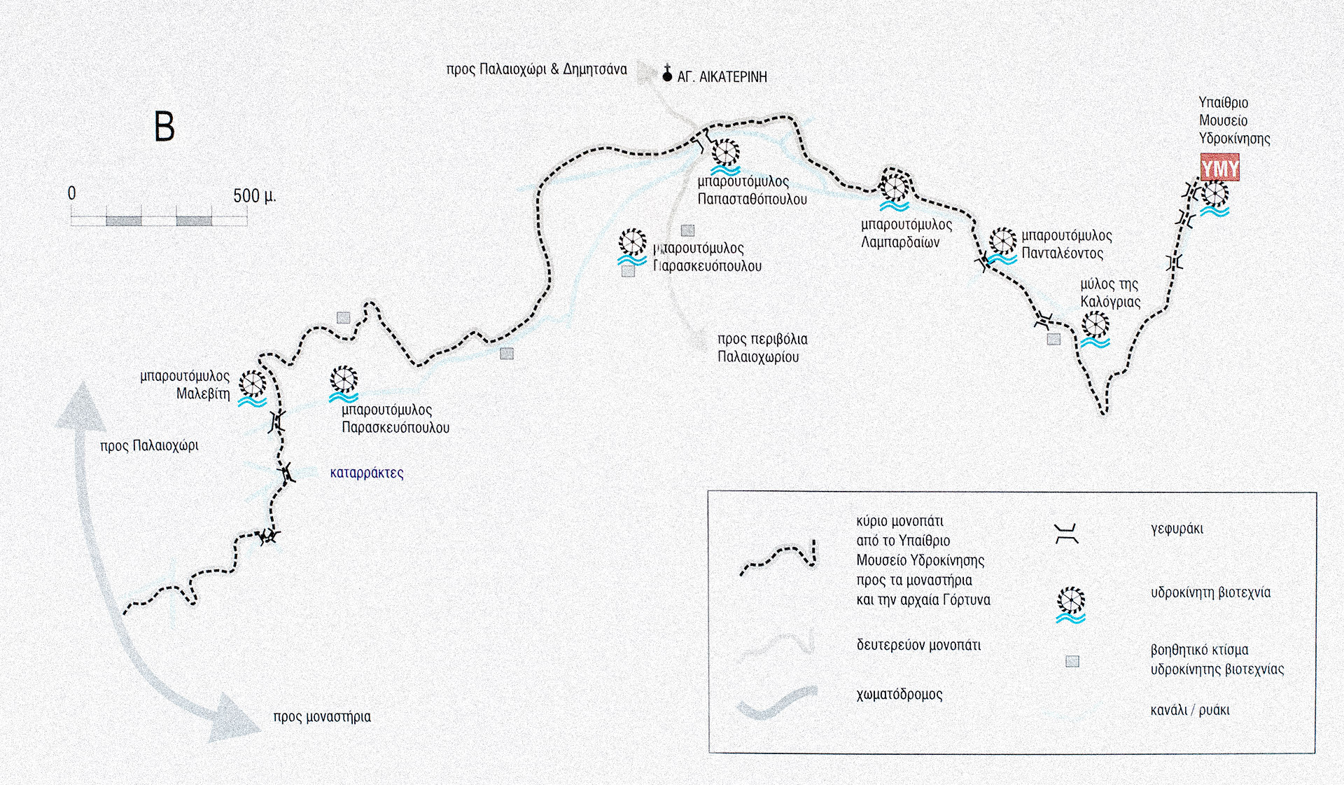 Το Υπαίθριο Μουσείο Υδροκίνησης παρουσιάζει και περιλαμβάνει ανάγλυφα: