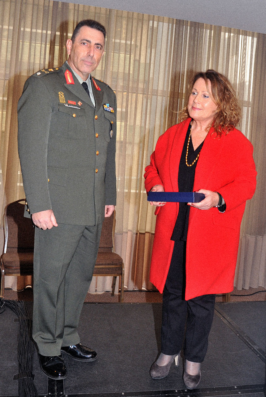 Απονέμεται στο Υποδιοικητή της Στρατιωτικής Σχολής Ευελπίδων (ΣΣΕ), Ταξίαρχο κ. ΙΩΑΝΝΗ ΣΤΑΜΑΤΑΚΗ, από την Διευθύντρια του Ιστορικού Αρχείου-Μουσείου Ύδρας κα. ΚΩΝ/ΝΑ ΑΔΑΜΟΠΟΥΛΟΥ.
