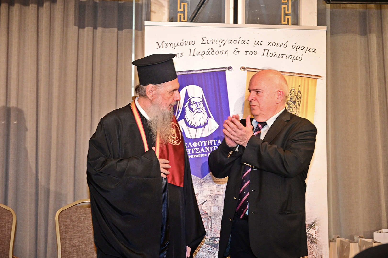 Από τον έξαρχο του Παναγίου Τάφου στην Αθήνα Πανασιολογιώτατο Αρχιμανδρίτη κ. Ιερώνυμο και τον Δήμαρχο Γορτυνίας κ. Ευστάθιο Κούλη.