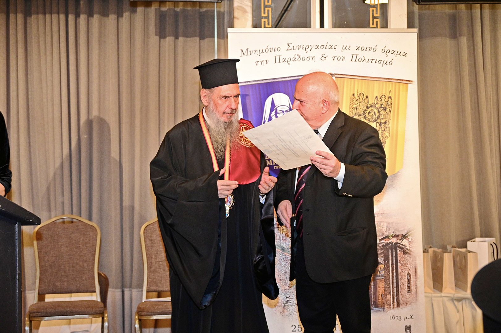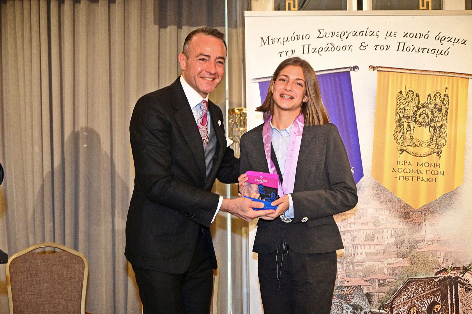 Από τον Υφυπουργό Παιδείας κ. Κων/νο Βλάση και τον πρόεδρο της Ομοσπονδίας Ένωσης Σικάγου (ΗΠΑ), κ. Γεώργιο Ρεβελιώτη.