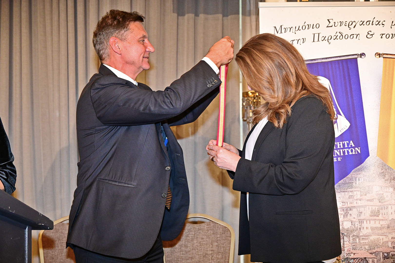 Από την κα Λαμπρινή Καρακούρτη-Ορφανοπούλου – Ιστορικό Τέχνης, Εθνικής Πινακοθήκης – Μουσείου Αλεξάνδρου Σούτσου – Πινακοθήκης Ναυπλίου και τον πρώην πρόεδρο της Pan Arcadian Federation of America, κ. Ανδρέα Παπαντωνίου.